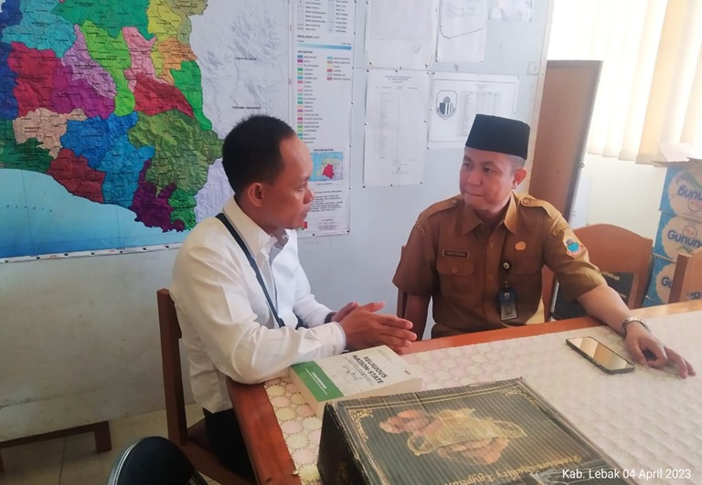 LEBAK,- Jajaran Sat Intelkam Polres Lebak mengunjungi salah satu pengurus Forum Koordinasi Pencegahan Terorisme (FKPT) Kabupaten Lebak, Kamis (6/4/2023).